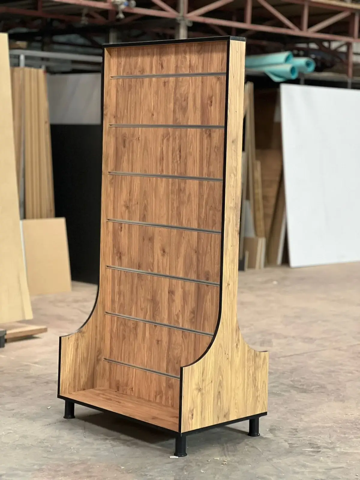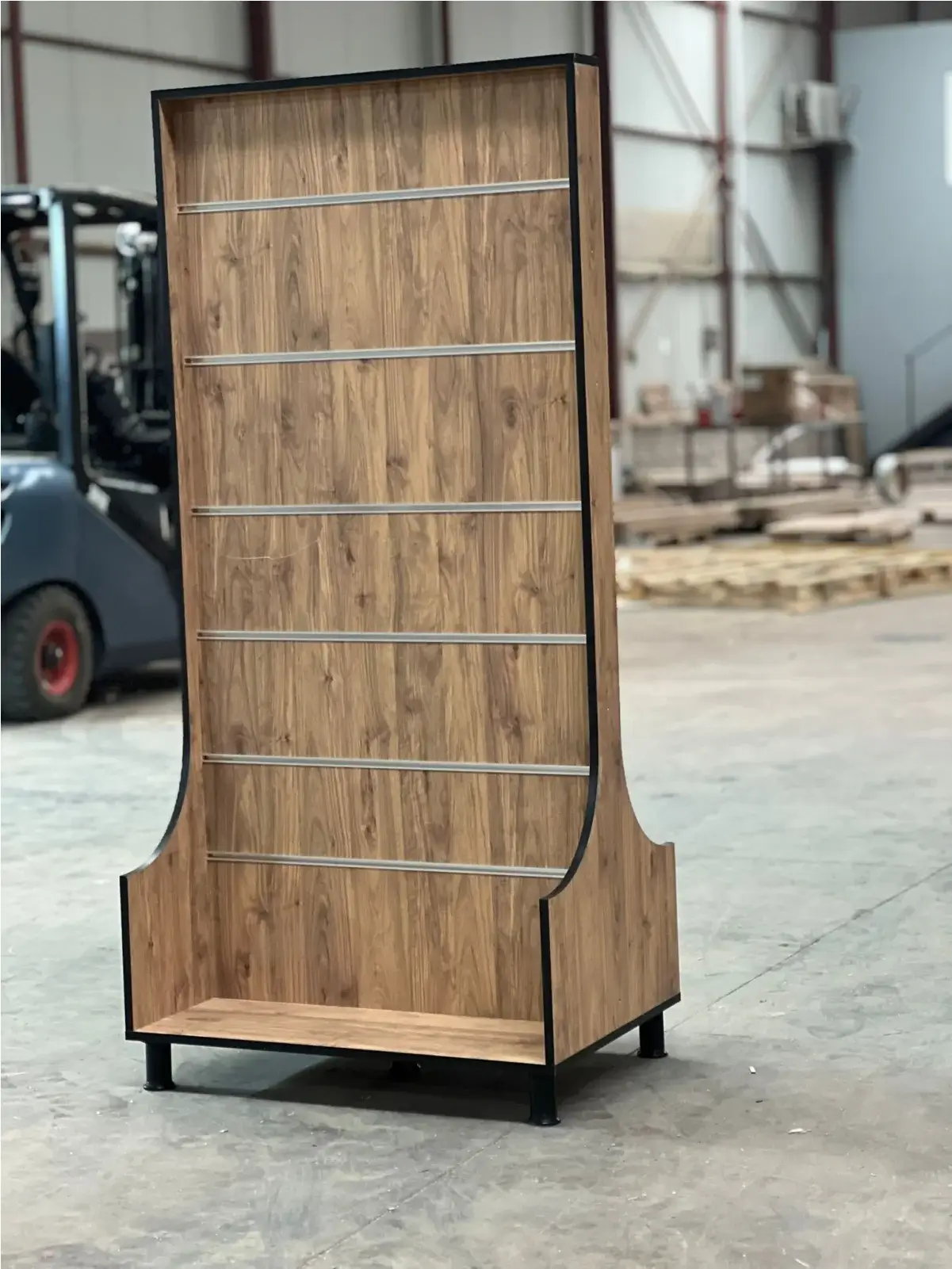 Ahşap Teşhir Standı ; Kancalı ve Reklam Alanlı olarak üretilebilmektedir. Görseldeki Ürün Teşhir Standımız Ahşap Malzemeden üretilmiş olup 7 adet Ray Kanca Aralığı bulunmaktadır. Ortalama bir ray boşluğuna 10 adede kadar Kanca takılabilmektedir.